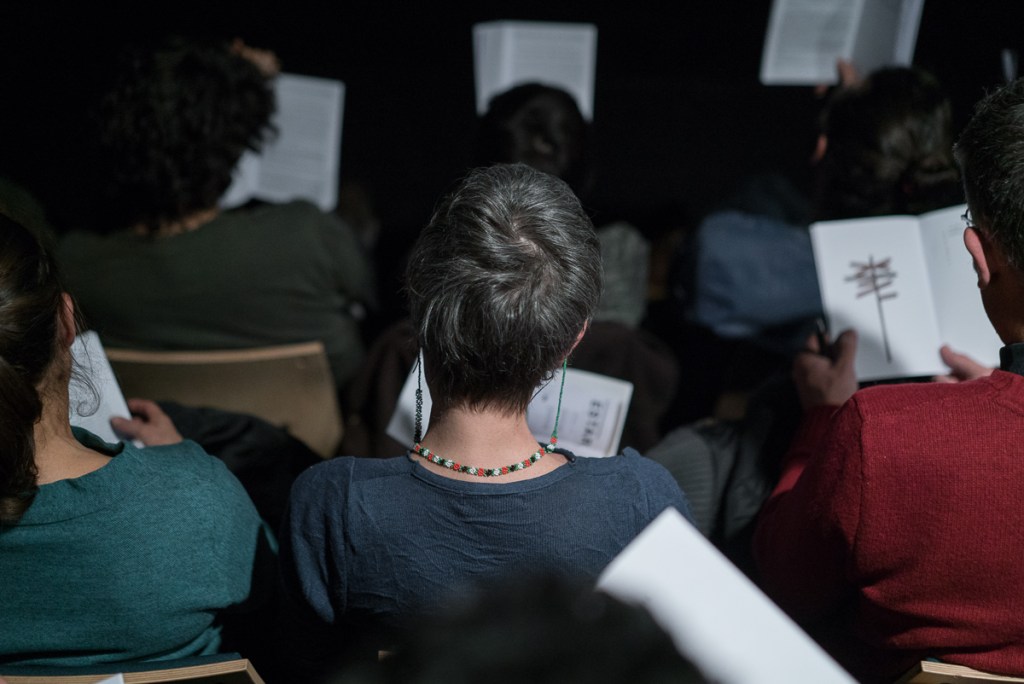 Algo de historia: por entonces coordinaba Teatro Pradillo junto a Getsemaní de San Marcos que enfrentaba la dirección del espacio. Personalmente, llevaba un tiempo observando el trabajo de Quim Bigas, probablemente el mismo deseando colaborar con él. Fuí afortunada, Quim me invitó como activadora y performer. Gracias a esta invitación comencé a conocer su trabajo de una manera más profunda y fue la primera de 3 colaboraciones que realizamos en el futuro.