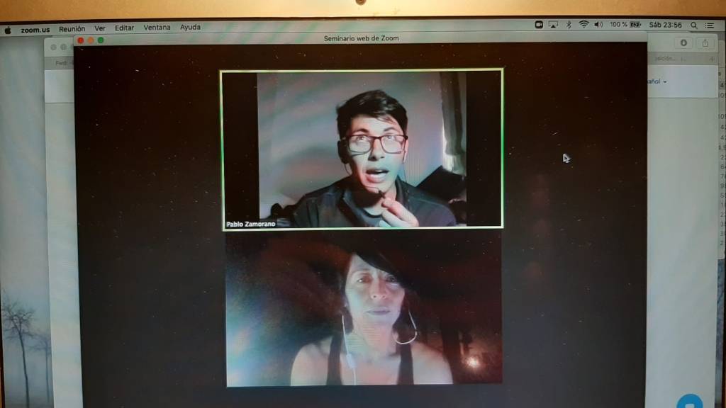 Mi cuerpo está sentado sobre una silla mientras camino por los pasillos de la Tate Modern mientras le comento a mamá por chat que los contagios siguen aumentando mientras participo de una conversación entre programadores escénicos latinoamericanos mientras escucho la pieza sonora de mi amigo Dani mientras espero a que comience el ensayo virtual de Formas de estar siendo.