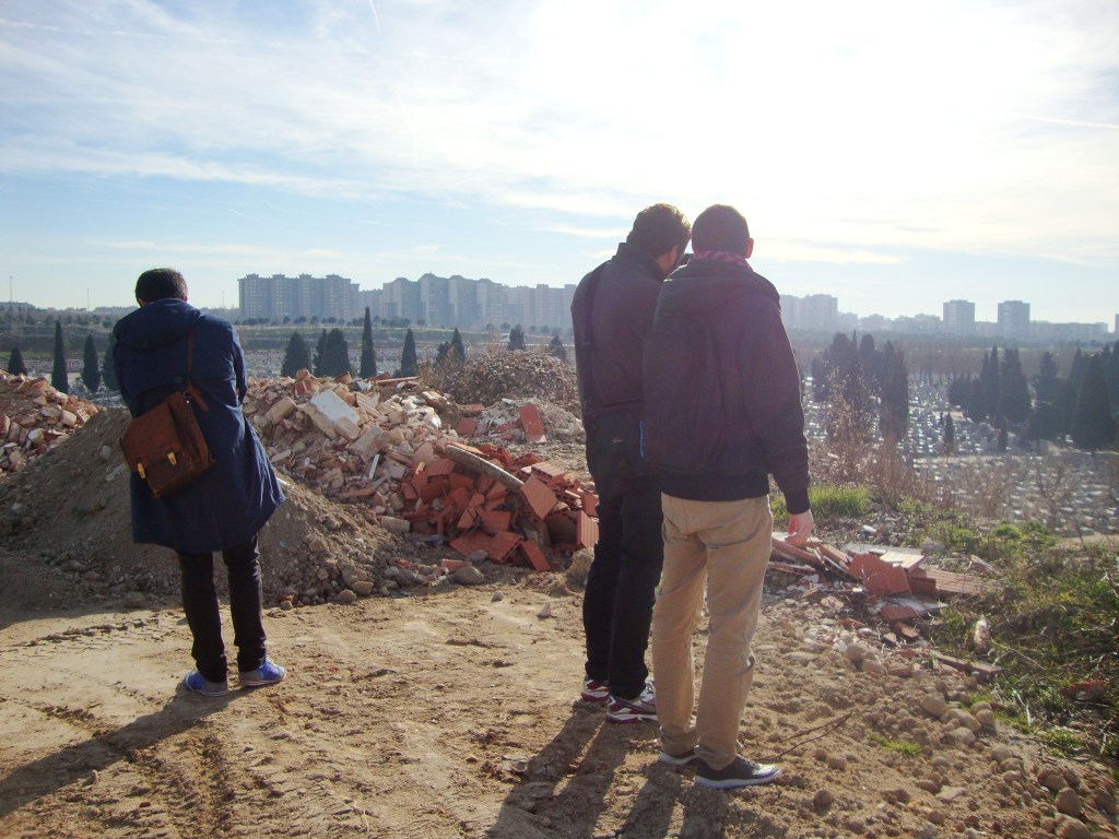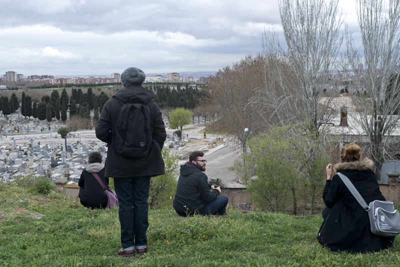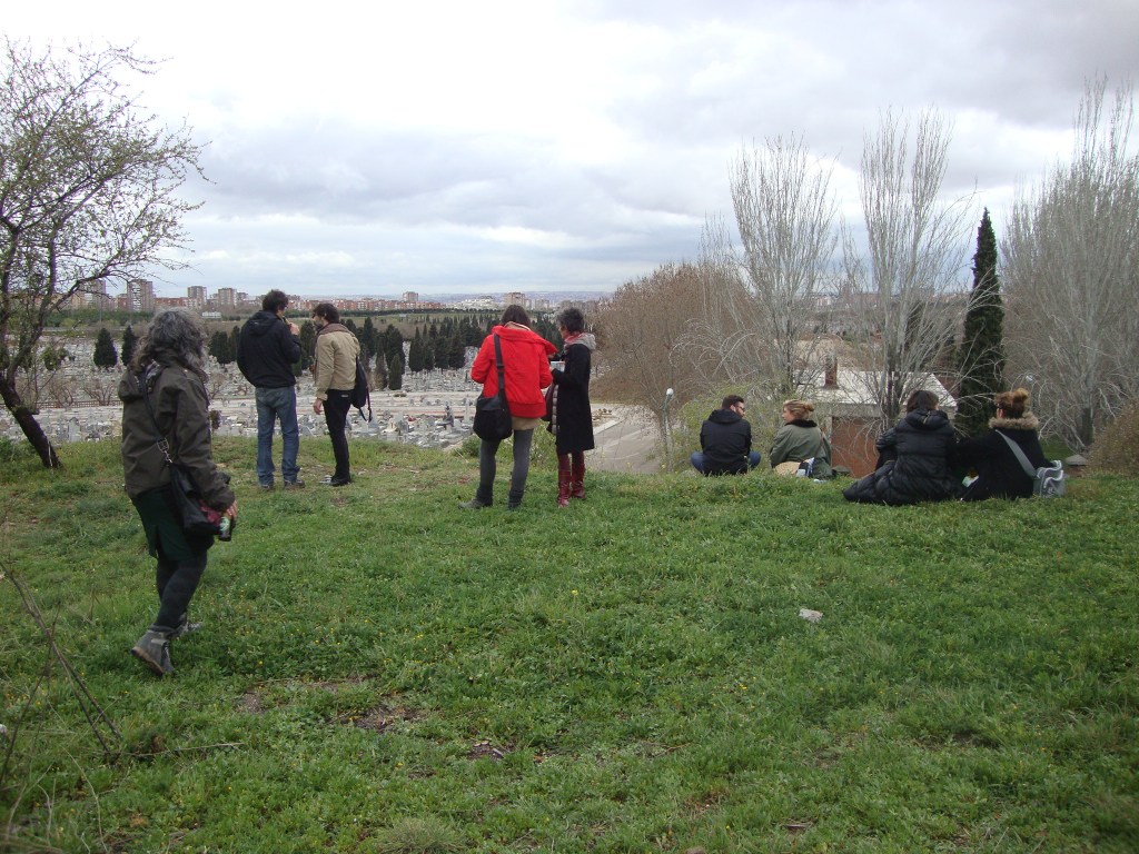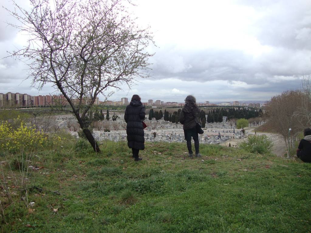 Durante el proceso de Ruido de Fondo, hubo otros paseos al cementerio de La Almudena y especialmente al montículo de tierra prensada formado por la que se obtiene cuando se escaba una fosa. De pie en ese cerro pensábamos estar parados sobre nuestro futuro, ese que se hará con la tierra de nuestras tumbas.