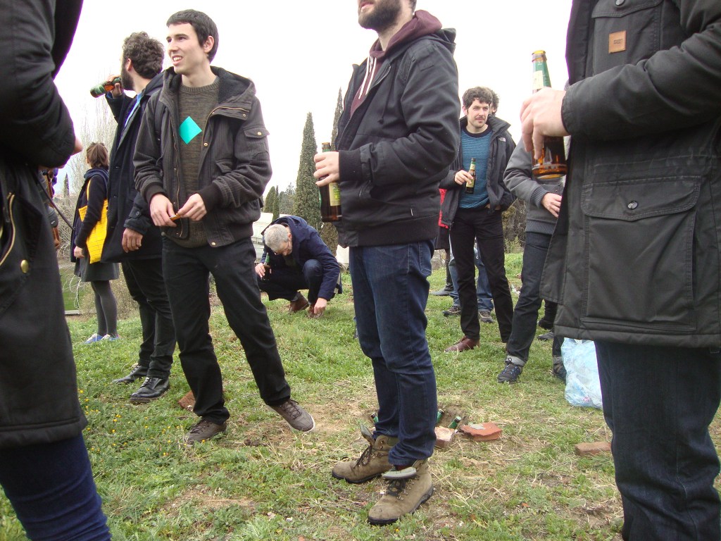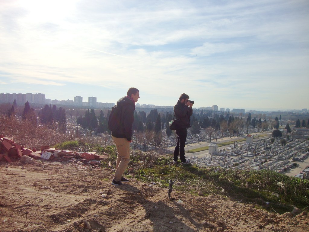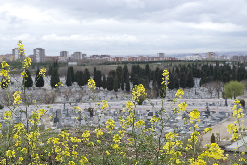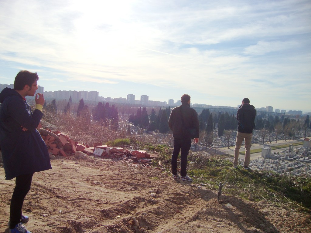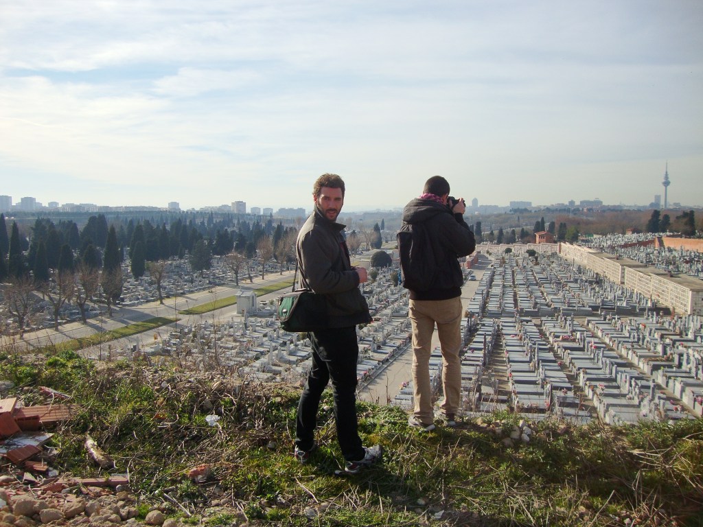 Durante el proceso de Ruido de Fondo, hubo otros paseos al cementerio de La Almudena y especialmente al montículo de tierra prensada formado por la que se obtiene cuando se escaba una fosa. De pie en ese cerro pensábamos estar parados sobre nuestro futuro, ese que se hará con la tierra de nuestras tumbas.