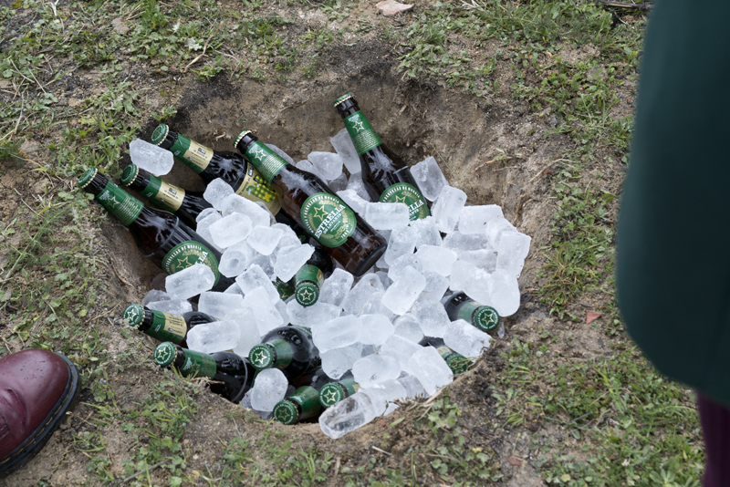 Merodeamos la montaña, llegamos a un vertedero donde hay algunos hoyos llenos de cervezas.