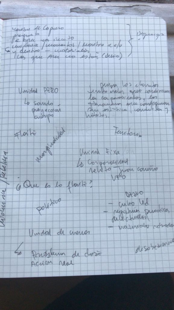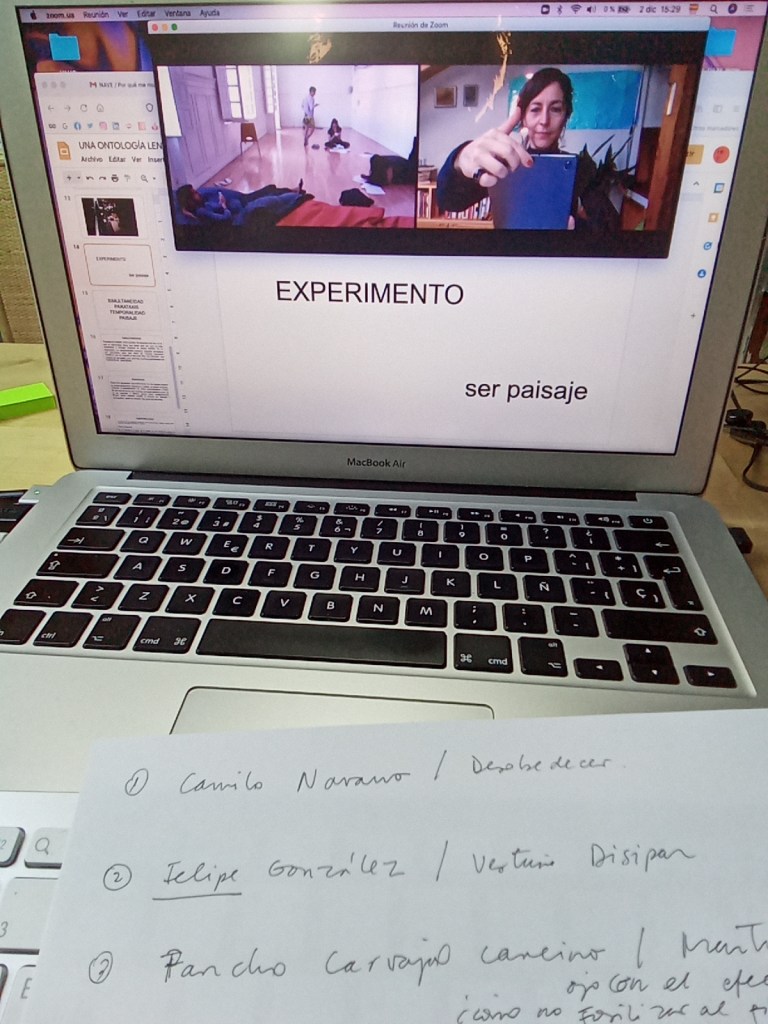 Una de las herramientas que practicamos fue ser paisaje, entendido como una manera específica de organizar los materiales, las presencias y la narrativa de forma no lineal, sino, simultáneamente.